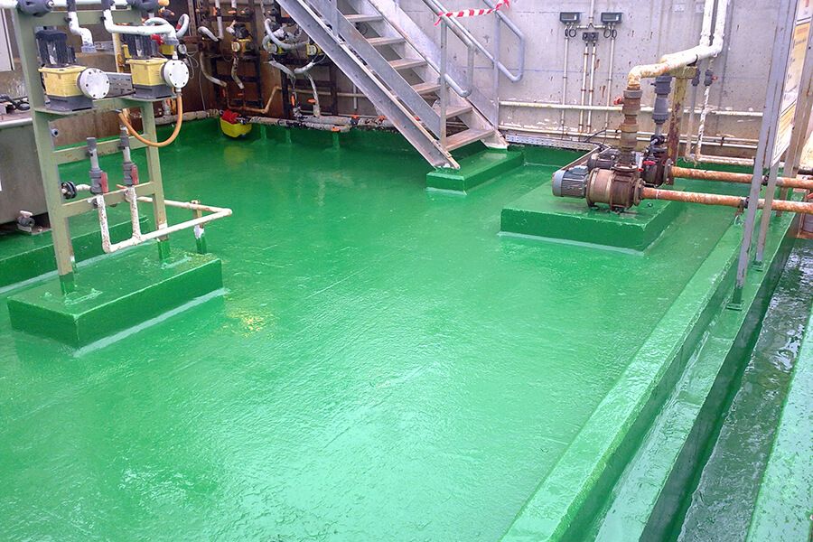 Recubrimientos continuos para cubetos, depósitos, canales, estructuras, etc, de sustancias químicas corrosivas, tanto en interior como en exterior, protegiendo cualquier sustrato de la mayoría de productos químicos industriales.